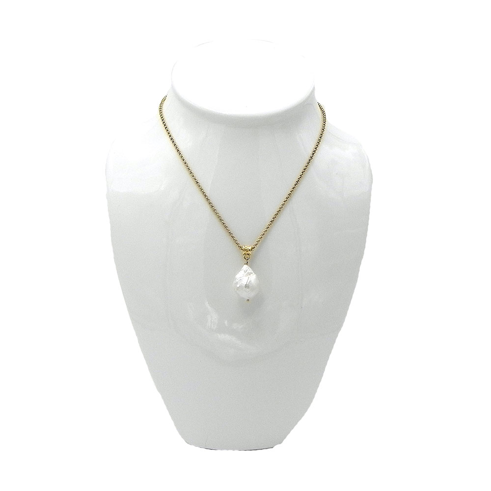 A large Baroque Pearl dangles from a lovely delicate chain.