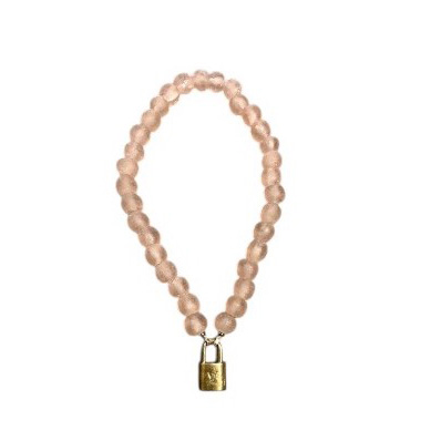 Reclaimed pink glass from Africa bead necklace featuring the brass LuxLock. A unique, handcrafted statement piece blending artisanal texture with iconic style.