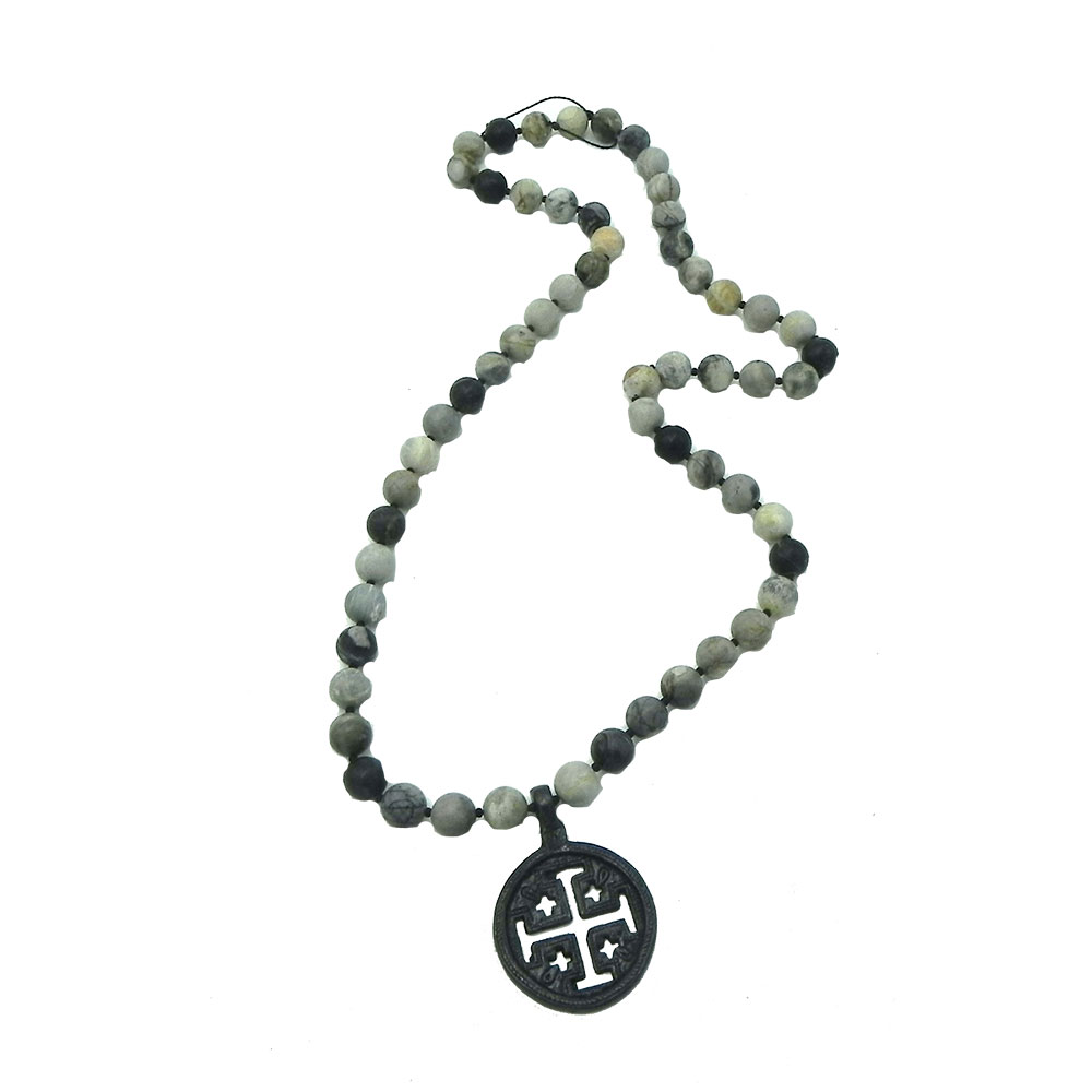 Matt Picasso stone beads give this necklace an organic feel. Combined with the Protector Pendant we have a beautiful contrast.